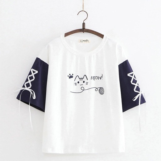 Product details of New Fashion Meow Ladies Short Sleeve T-Shirt High Quality- Drop Shoulder